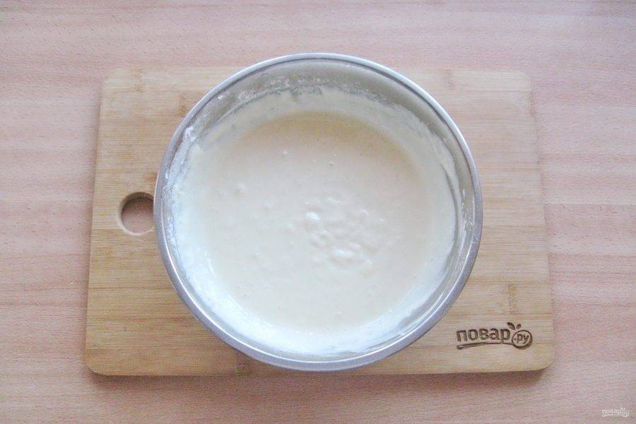 Замесите однородное, гладкое тесто, по консистенции как не очень густая сметана.