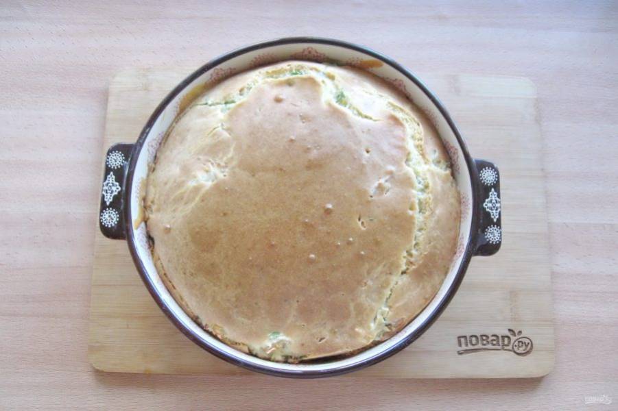 Выпекайте пирог в духовке, разогретой до 175-180 градусов 40 минут до румяной корочки.