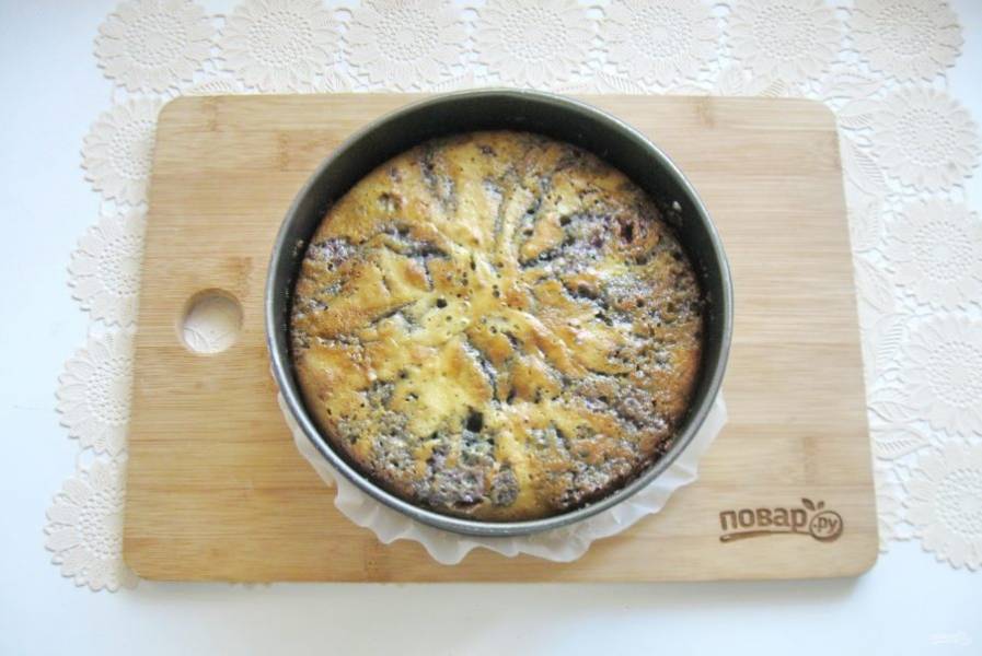 Готовый пирог достаньте из формы, охладите и нарежьте. Можно подавать к столу.