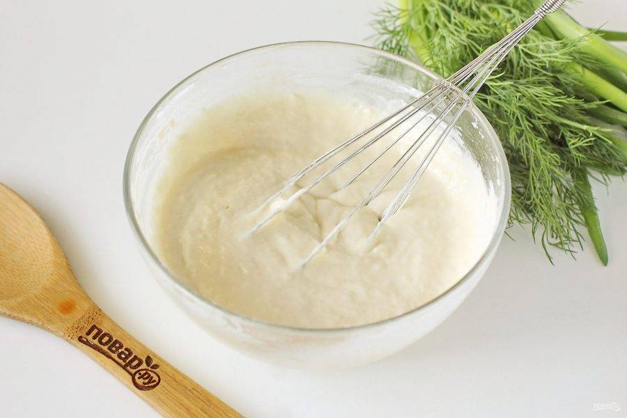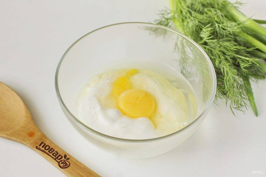 В глубокой миске соедините сметану, яйцо, соду и 0,5 ч.л. соли.