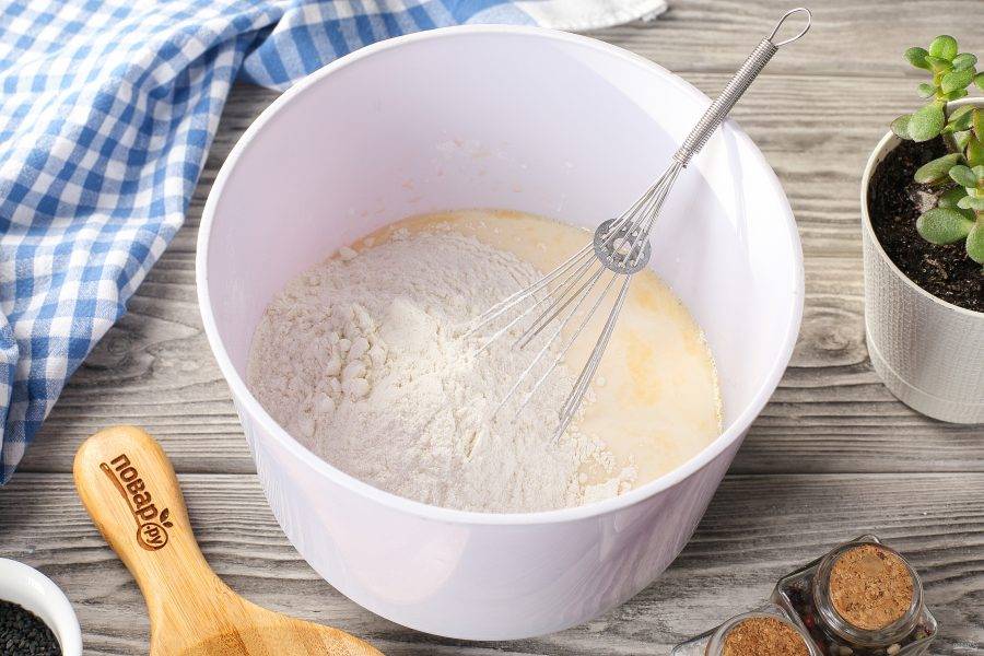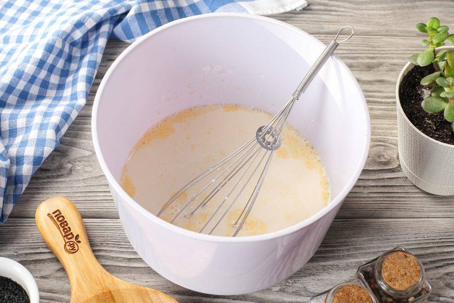 Перемешайте. Должно получиться довольно жидкое, однородное тесто.