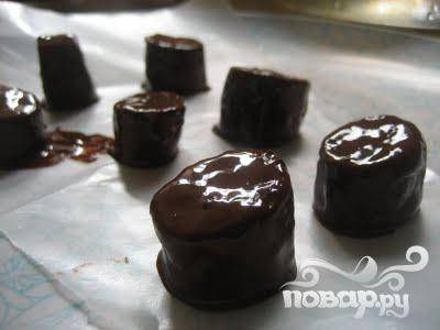 5. По очереди погружать каждый ломтик в шоколад, и тут же выкладывать на блюдо с крошкой печенья и орехов и обваливать в ней.