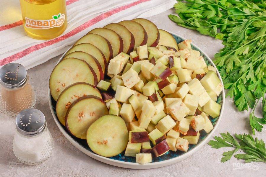 Точно так же поступите и с баклажаном. Нарезку кубиками можно добавить в рагу или вторые блюда, приготовить из нее вкусную овощную икру. А нарезка кружочками отлично подойдет для обжаривания в кляре, в муке и т.д.