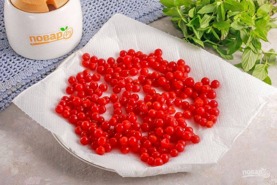 Выложите на тарелку бумажную салфетку или полотенце и высыпьте на нее промытые ягоды. Промокните сверху салфеткой.