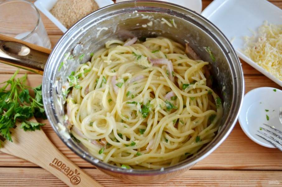 Хотите удивить близких интересным и вкусным ужином? Тогда мой рецепт поможет вам. Внутри запеченок из пасты есть кусочки бекона, сыр, а сверху корочка из сухариков.