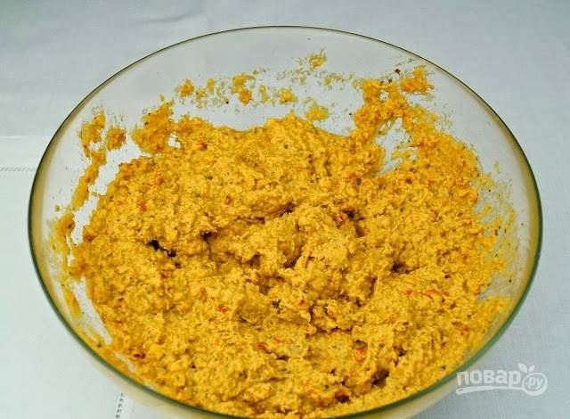 4. Смажьте форму маслом, присыпьте чуть мукой и выложите нут. Запекайте в разогретой до 180 градусов духовке около получаса.