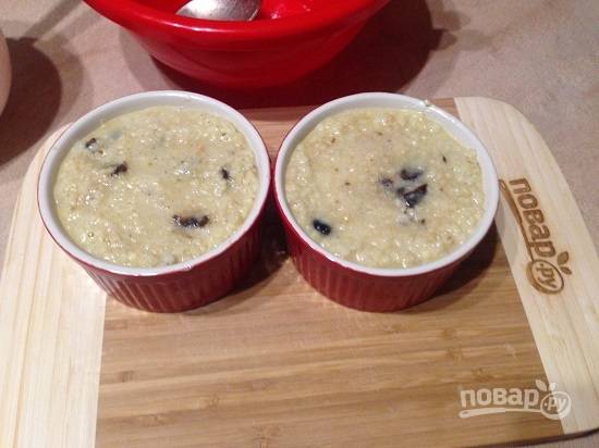 8. Кашу можно запекать в большой форме, а можно в маленьких. смазываем формы сливочным маслом и наполняем кашей.