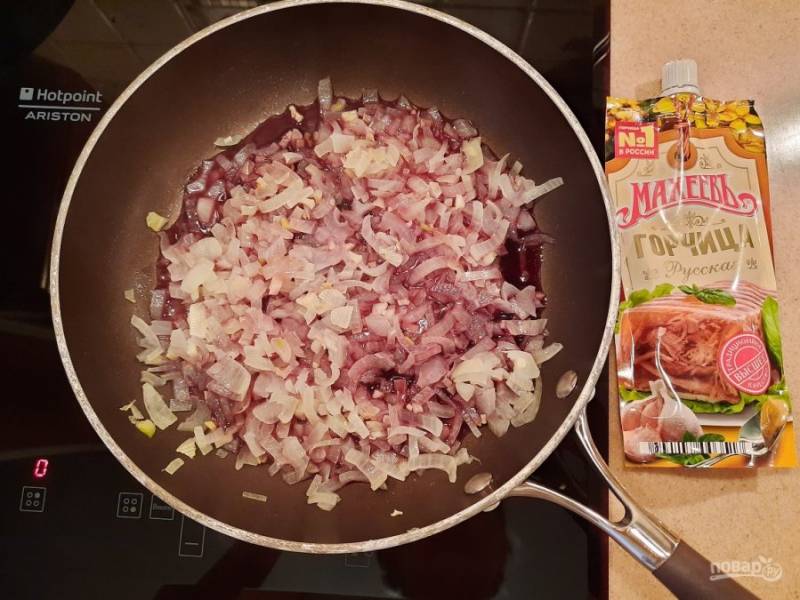 Добавьте в сковороду мёд, соевый соус, горчицу, дайте немного провариться.