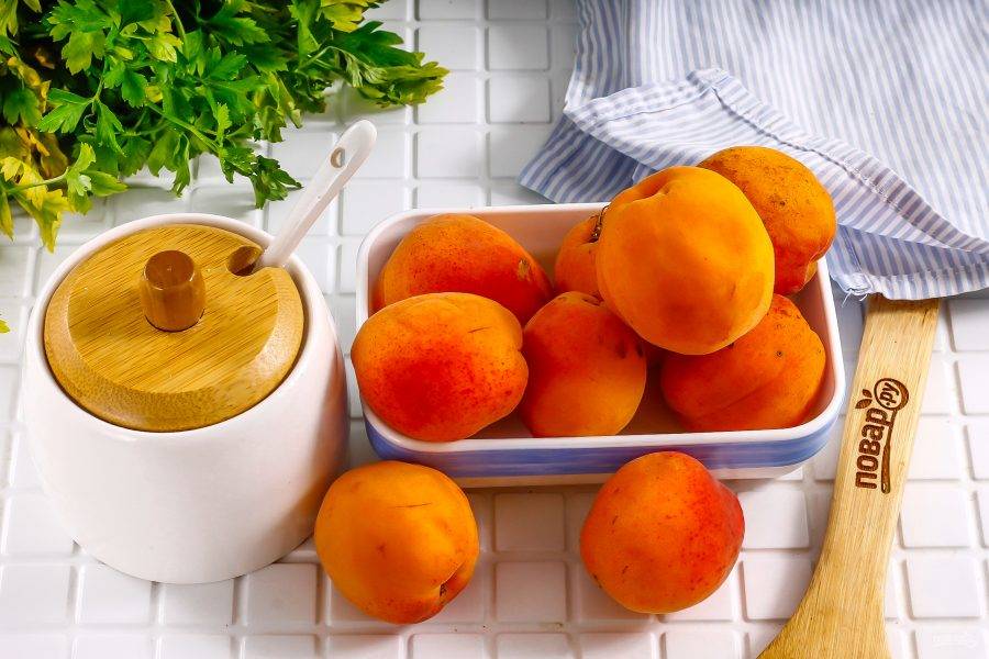 Подготовьте указанные ингредиенты. Абрикосы переберите, промойте в воде.