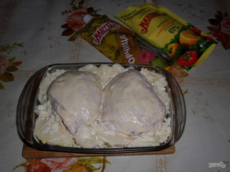 - Майонез 3 ст. ложки 1 ст.л. для курицы, 2 ст.л. для картофеля