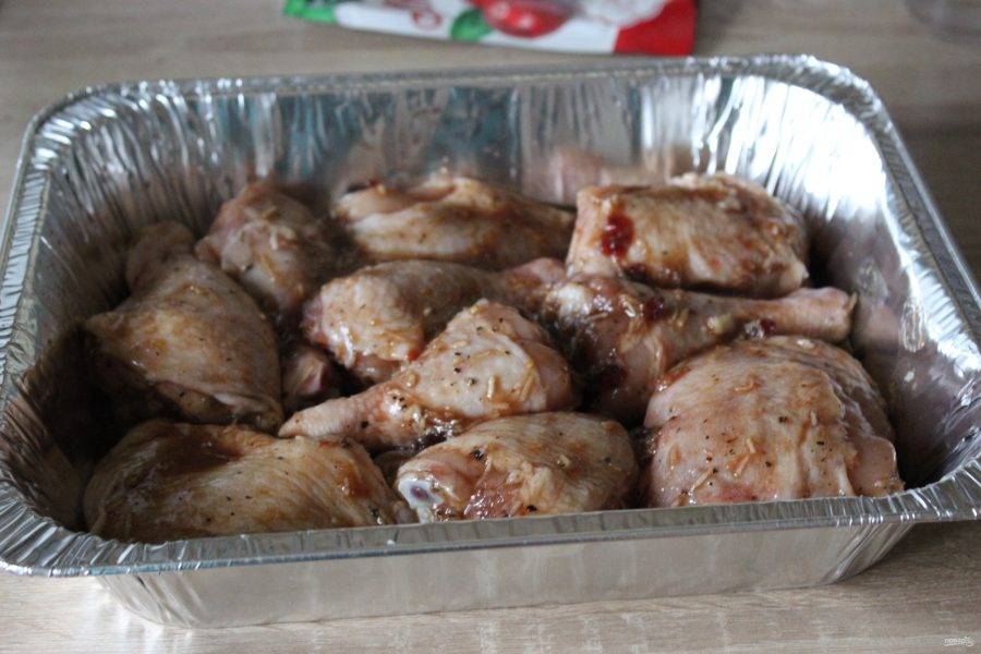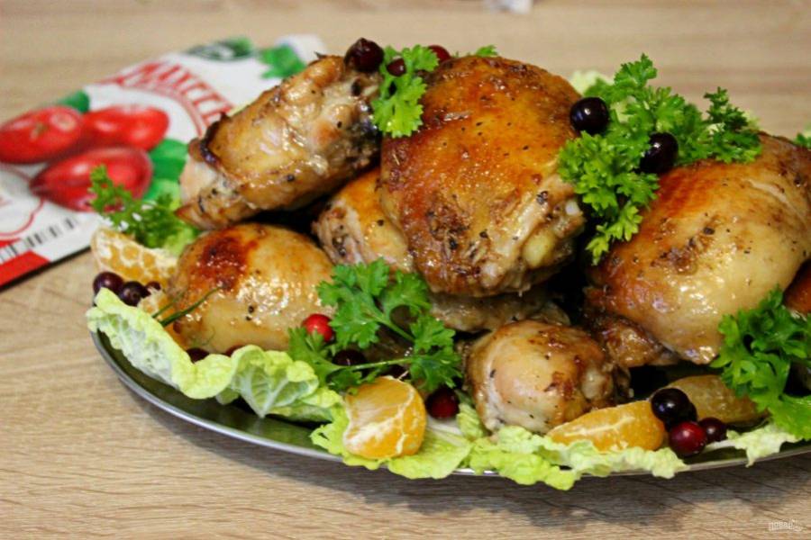 Запеченные куриные окорочка в маринаде с клюквенным джемом