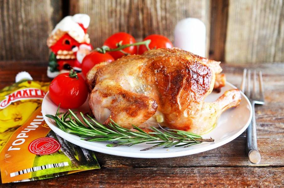 Интересный рецепт запеченного цыпленка или курочки, подойдет и для Новогоднего стола. Для маринада обязательно используйте Русскую горчицу ТМ МахеевЪ. В преддверии Нового года, советую взять рецепт на вооружение.