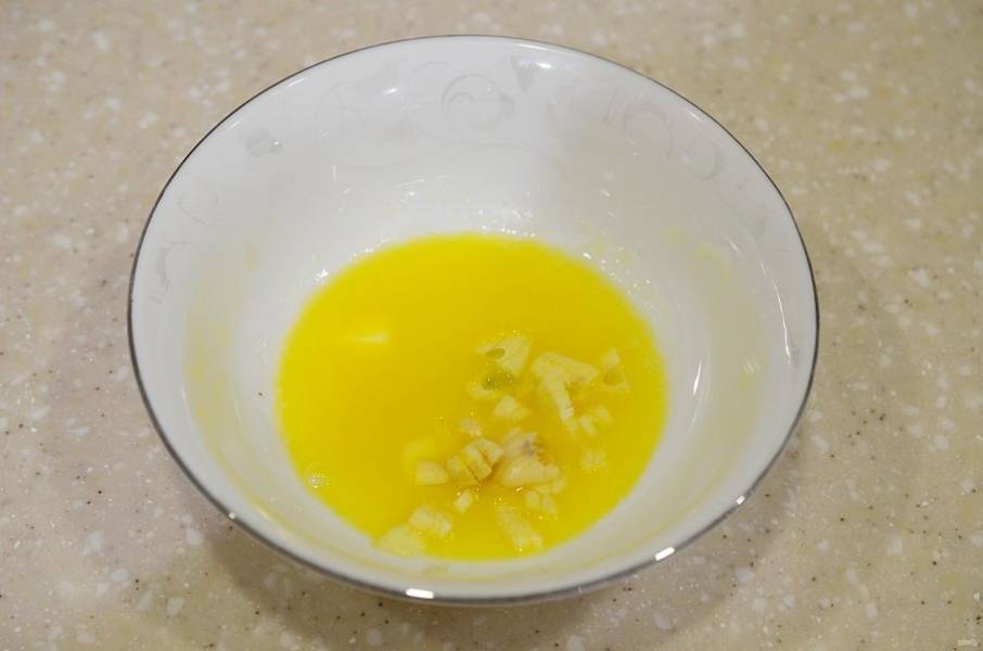 1. Растопите масло, добавьте в него измельченный чеснок.
