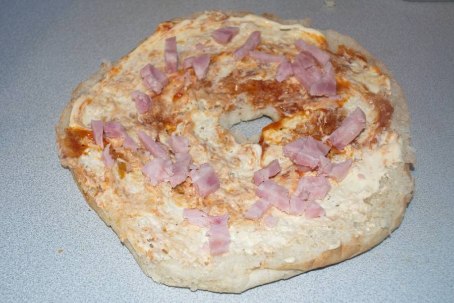 Смешайте майонез с томатным соусом: этой массой смазываем срез лаваша.