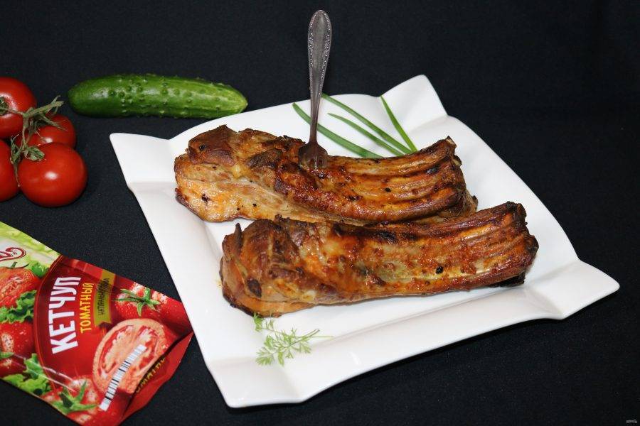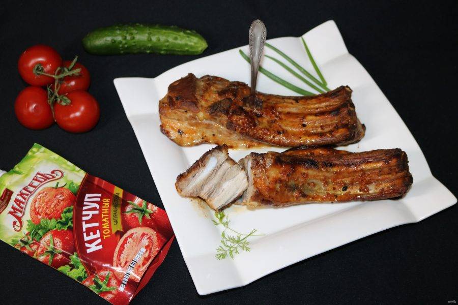 Запечёная грудинка с соусом из кетчупа "Махеевъ" Беларусь