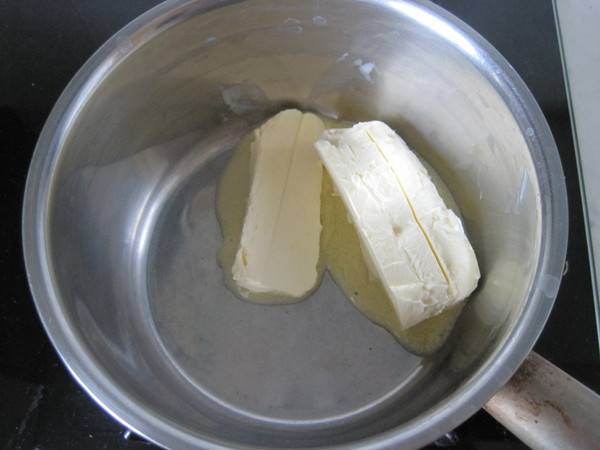 Теперь нужно приготовить соус, поэтому мы берем небольшую кастрюльку и кладем в нее сливочное масло, растапливаем его на медленном огне.
