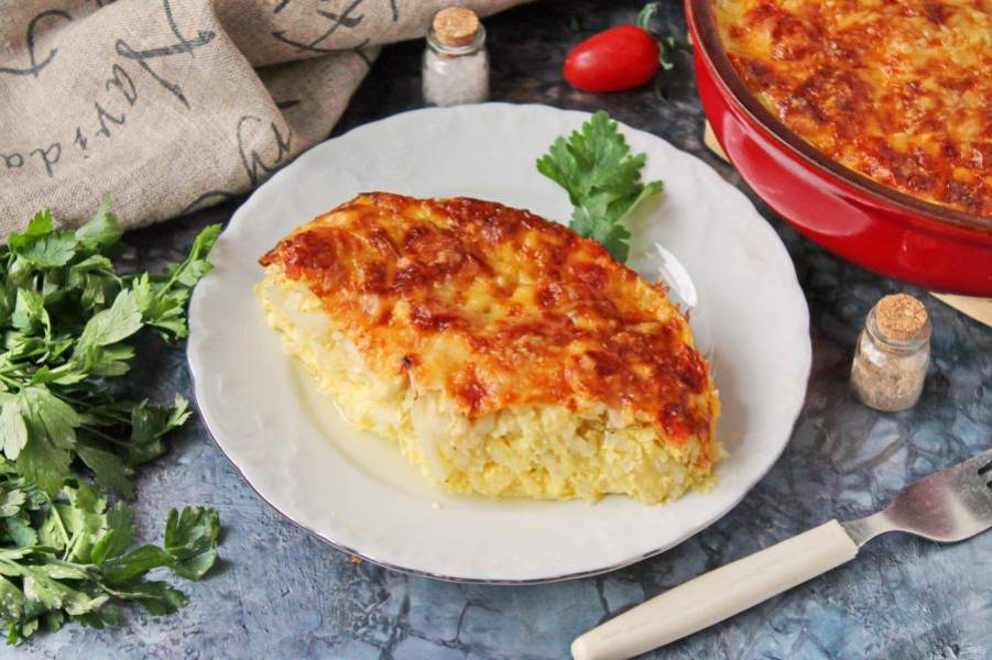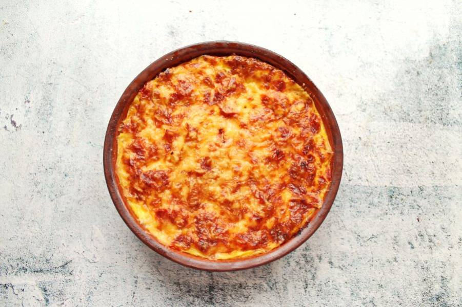 Поставьте форму с запеканкой в горячую духовку и запекайте при температуре 180 градусов в течение 30-40 минут. Готовую запеканку достаньте из духовки, немного остудите и подавайте к столу.