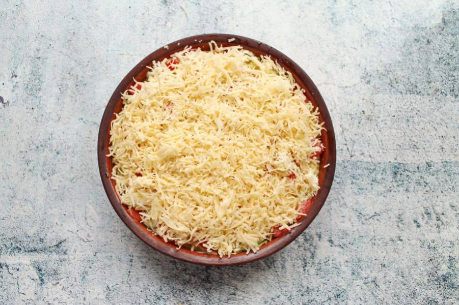 Сыр натрите на средней тёрке и посыпьте поверх запеканки.