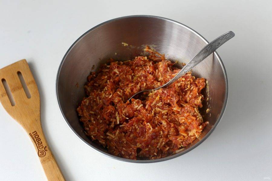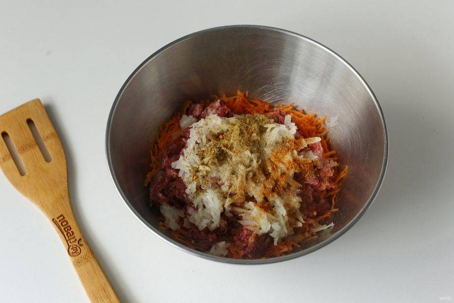 Натрите лук на крупной терке, добавьте соль по вкусу и любимые специи.