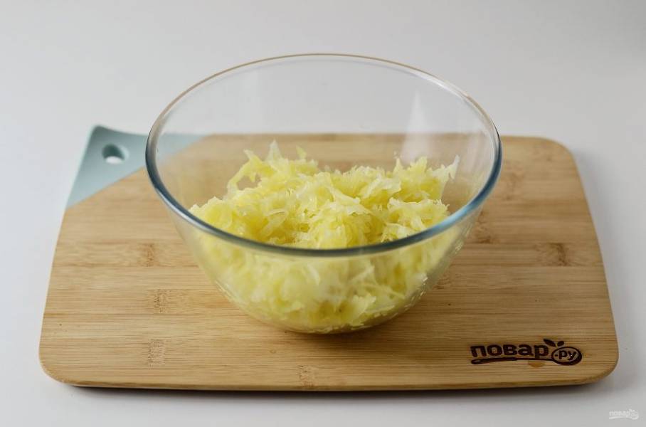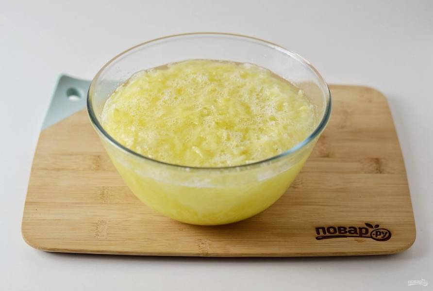Залейте горячей водой и оставьте на 10 минут. Слейте воду, откиньте картофель на сито.