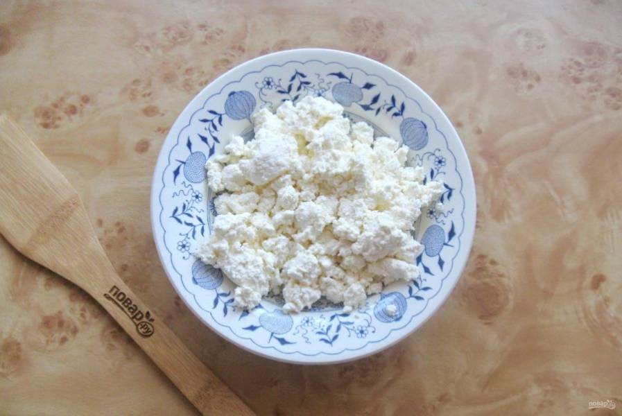 Взбейте творог с яйцом, солью и сахаром до консистенции крема.