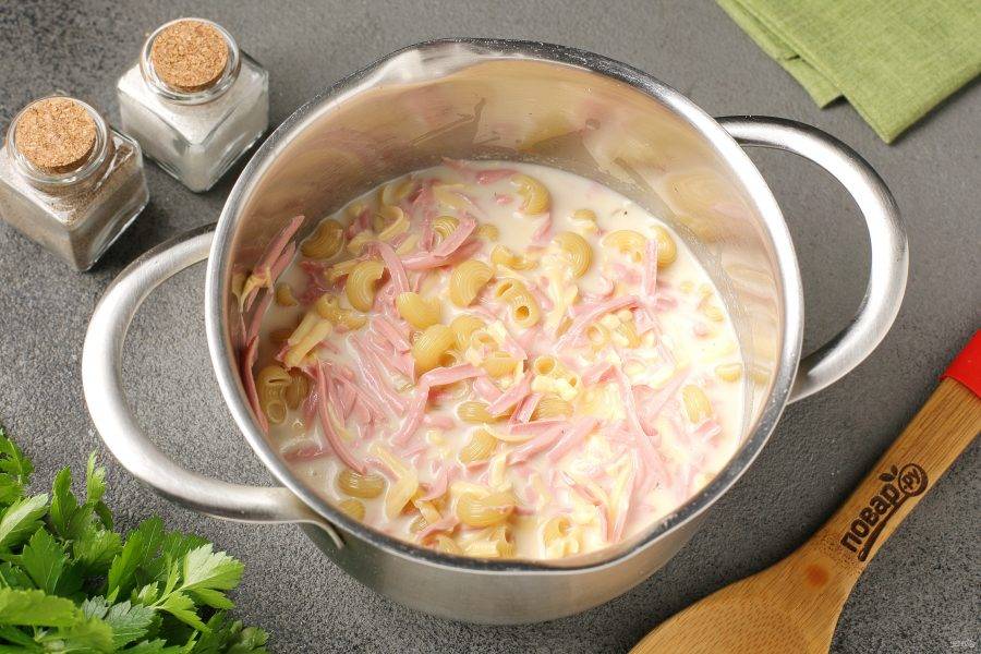 Добавьте сухие макароны.