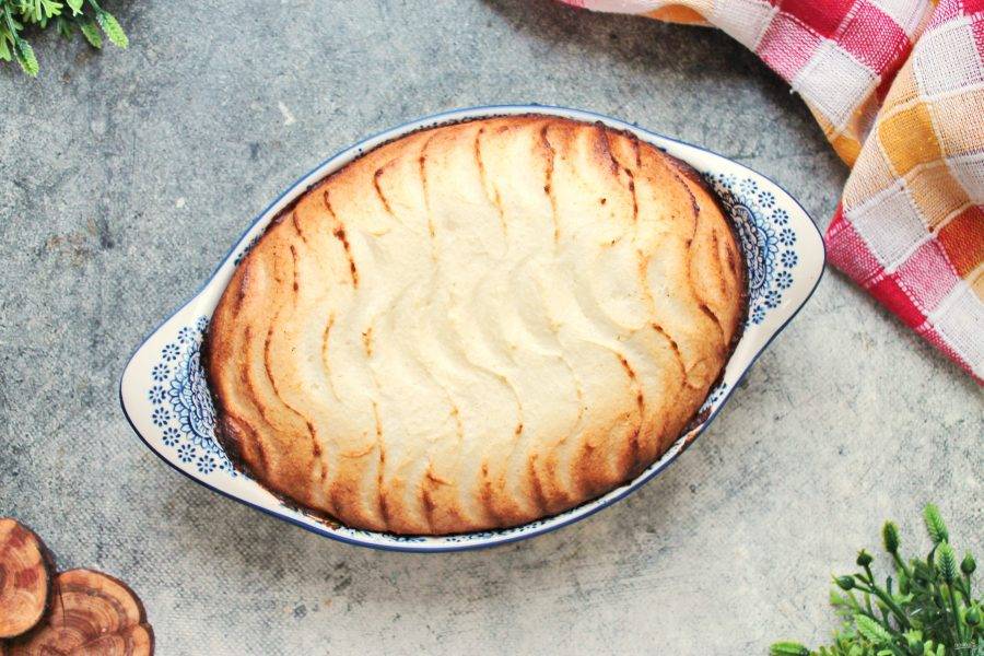 Готовую запеканку достаньте, полностью остудите, разрежьте на порции и подавайте к столу.