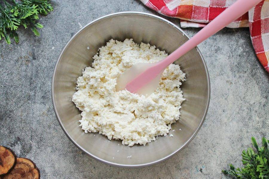 Творог берите не сильно влажный и протрите его через мелкое сито или пробейте блендером, чтобы избавиться от крупинок.