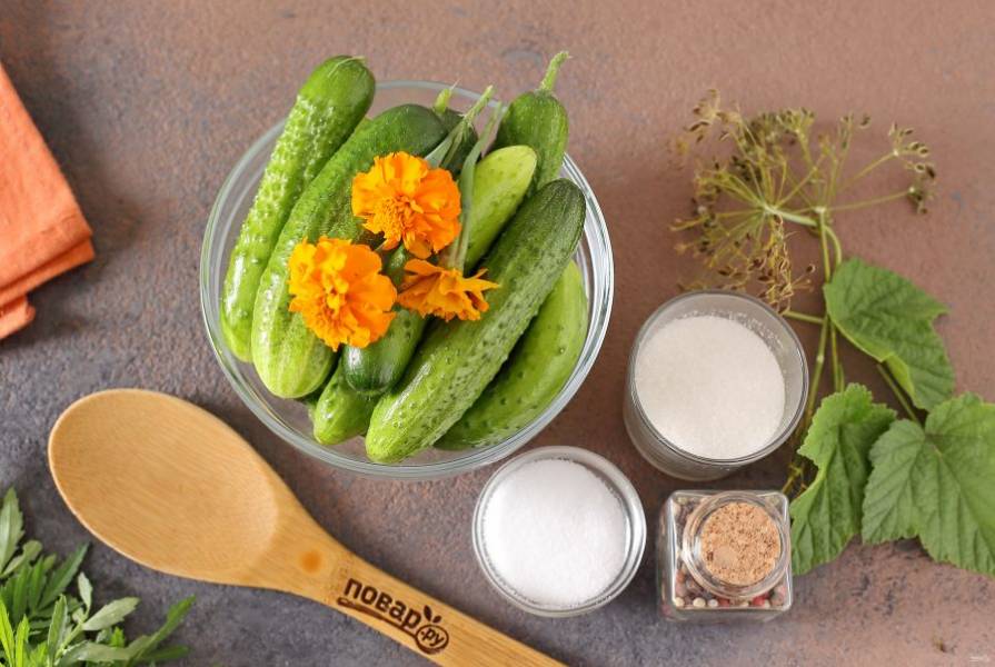 Многие хозяйки делают каждый год заготовки на зиму. Одна из самых популярных — маринованные огурцы. Хочу предложить очень интересный рецепт огурчиков с цветками бархатцев.