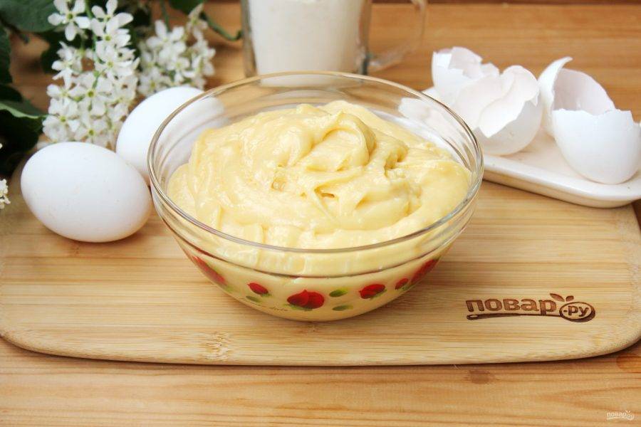 Заварное тесто должно быть без комочков, немного тянущимся.
