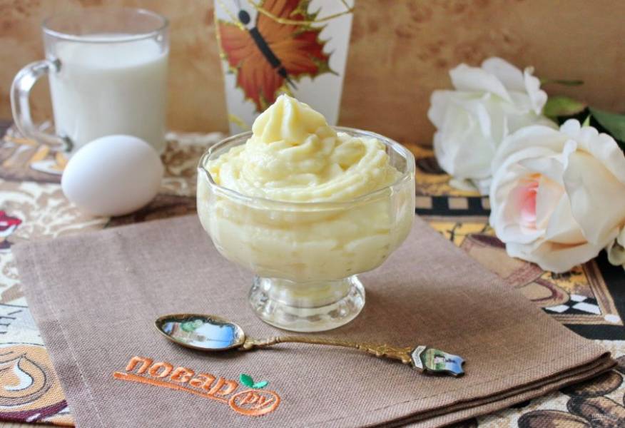 Заварной крем с мукой готов. Подавайте на десерт, прослаивайте торты и пирожные.