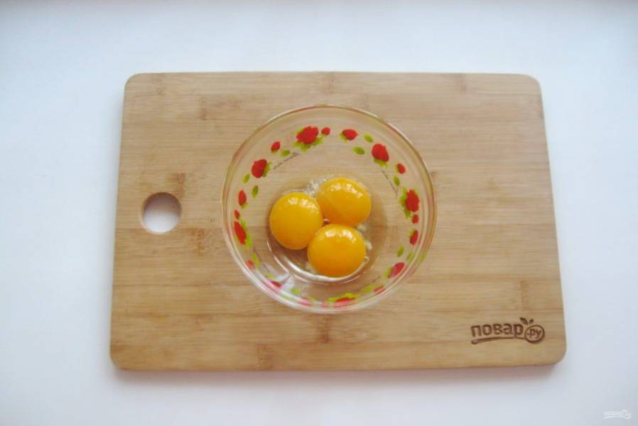 Отделите желтки от белков. Белки здесь нам не понадобятся.