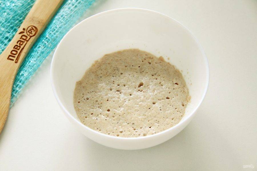 Отмерьте 20 мл. молока, подогрейте его до теплого состояния, добавьте к нему 0,5 ч.л. сахара и дрожжи. Перемешайте и оставьте на несколько минут до появления характерной "шапочки".