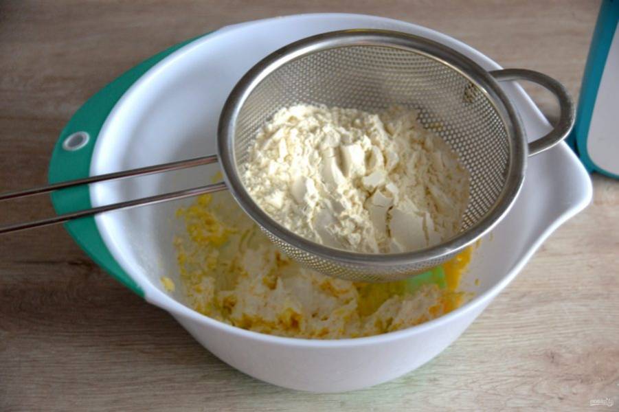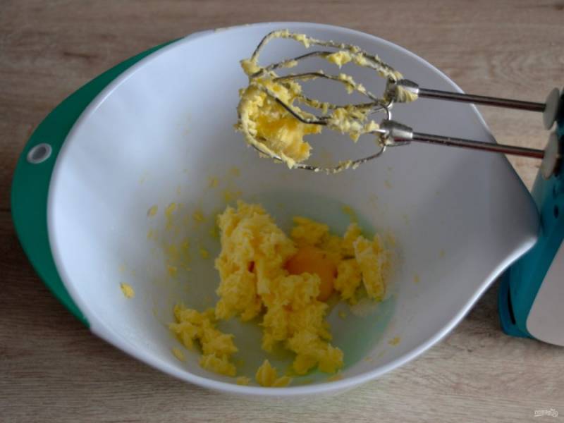 Добавьте в масляную смесь яичный желток, (белок на время отложите в сторону), взбейте.