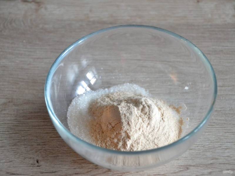 Смешайте 50 грамм сахара от общего количества с пектином.