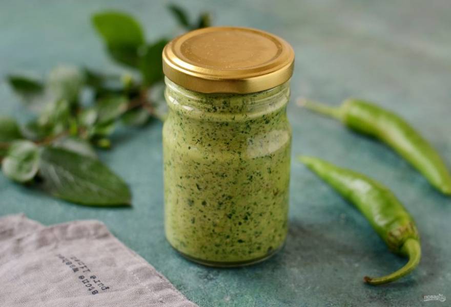 Готовим зеленую аджику по-грузински. Получается острая, ароматная и очень вкусная закуска. Ее можно использовать как соус или добавлять в супы.