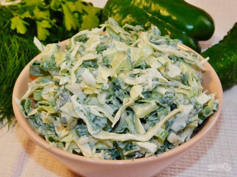 Веселые летние закуски надолго запоминаются и становятся ярким воспоминанием в зимнюю пору. Для хозяек теперь не секрет, как приготовить салат из зеленых овощей, просто воспользуйтесь этим рецептом.