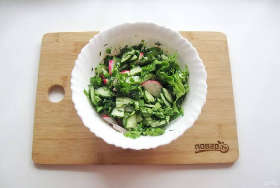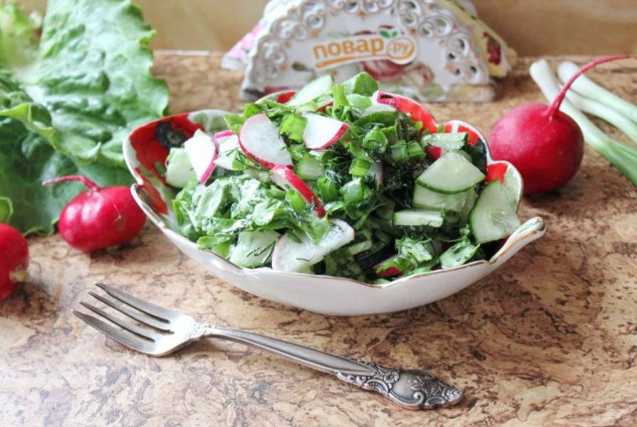 Зеленый салат с редиской