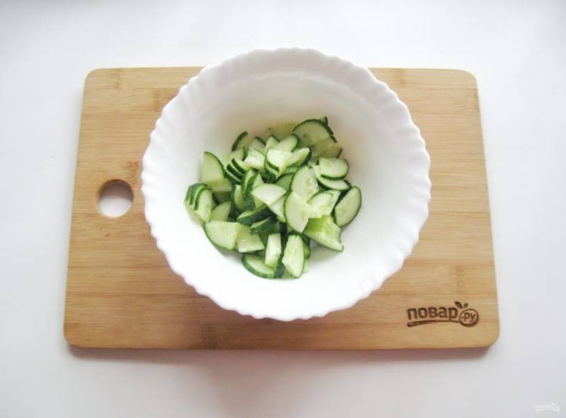 Свежий огурец помойте и нарежьте произвольно.