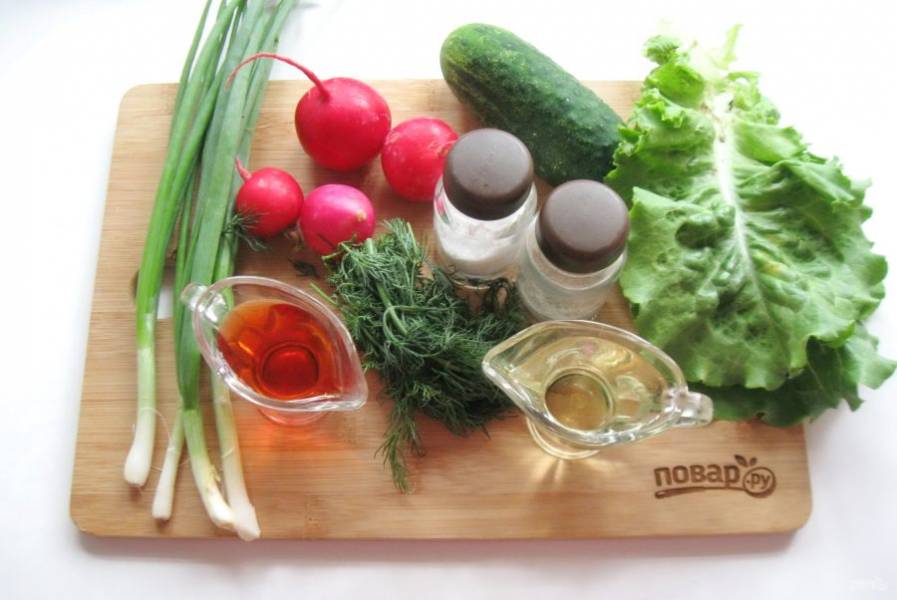 Подготовьте все ингредиенты для приготовления салата.