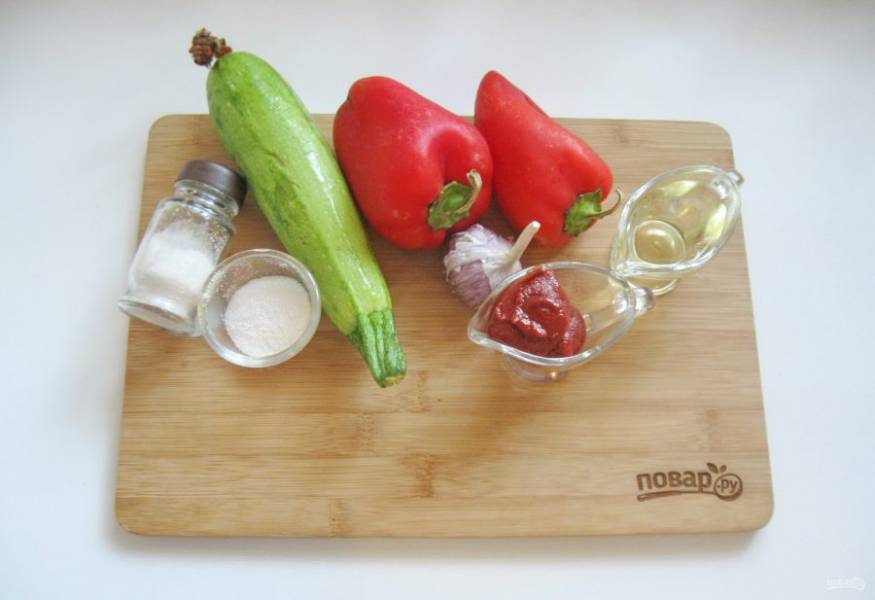 Подготовьте ингредиенты для приготовления салата из кабачков.
