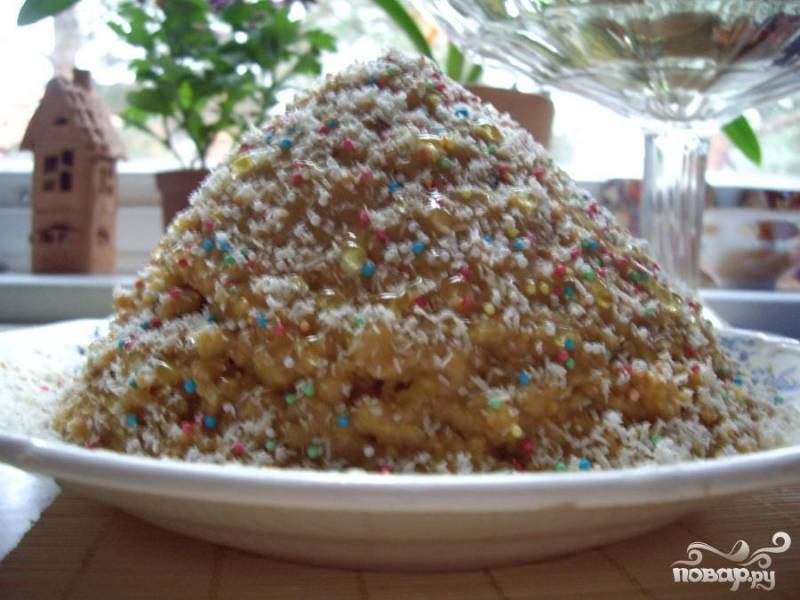 Мой любимый тортик, собственно это муравейник, но если ему придать форму горки и соответственно украсить, то может получится Зимняя горка или Ёлочка.