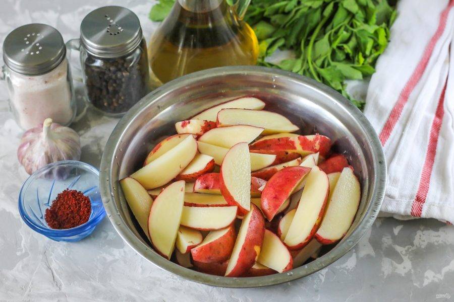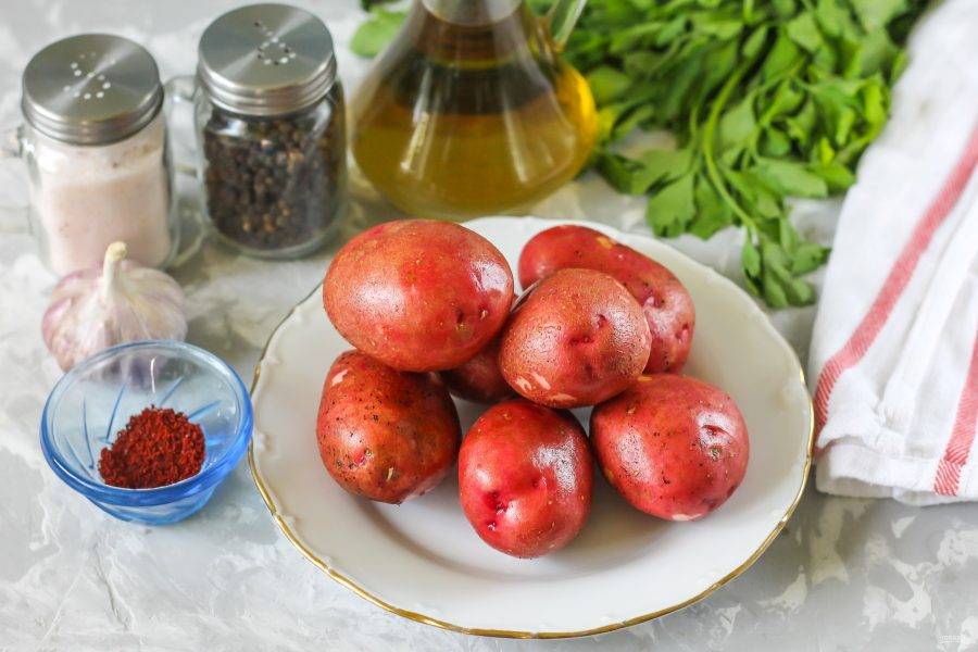 Подготовьте ингредиенты. Сорт картофеля может быть любым, равно как и выбранные вами приправы.